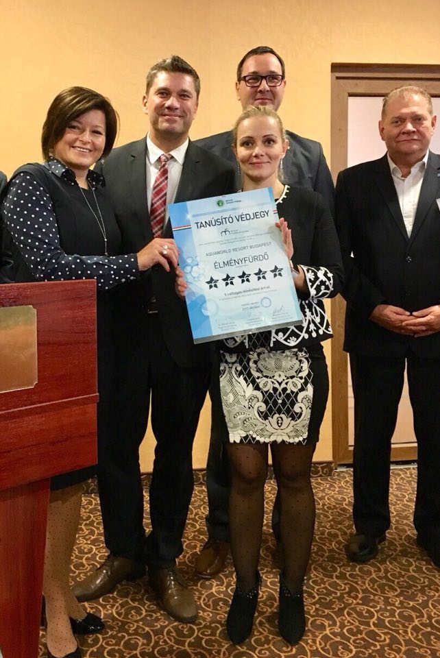 2017. november 16-án a budapesti Aquaworld Élményfürdő is csatlakozott a hazai, 5 csillagos fürdők táborához. A 2014-ben létrehozott nemzeti tanúsító védjegyrendszer célja, hogy ráirányítsa a figyelmet a minőséget képviselő szolgáltatókra, akik a magyar turizmus versenyképességének erősítése szempontjából kiemelt szerepet töltenek be. A csillagszám meghatározása pontozásos rendszerben történik, amely a minimum feltételeken túlmutató felkészültséget is vizsgálja, mint például a fürdő elhelyezkedését, megközelíthetőségét, infrastruktúráját, vízminőségét, vagy akár a munkatársak nyelvismeretét. A védjegyhasználatra vonatkozó döntést a Magyar Fürdőszövetség, a Nemzetgazdasági Minisztérium és a Magyar Kereskedelmi és Iparkamara képviselőiből álló bíráló bizottság javaslata alapján a turizmusért felelős miniszter hozza meg.
